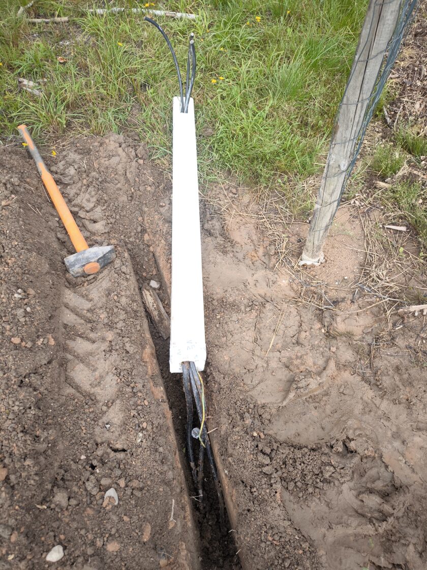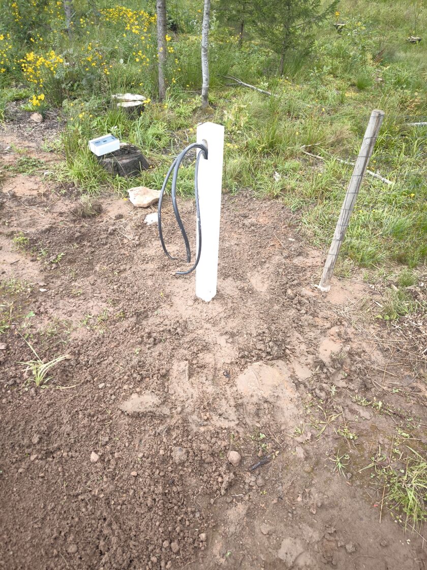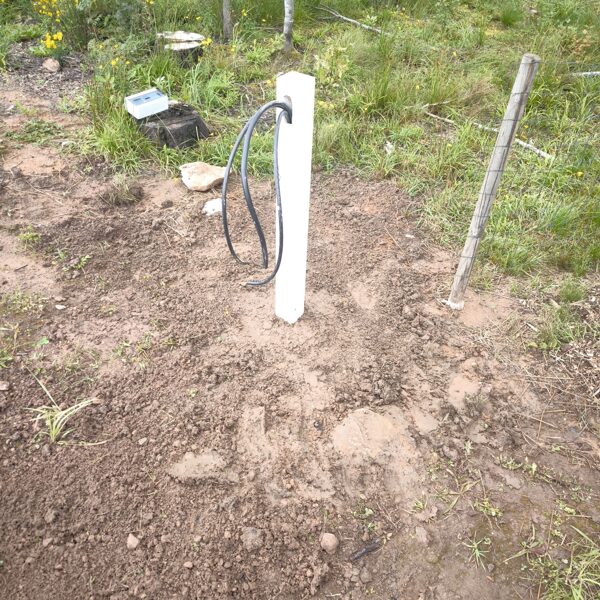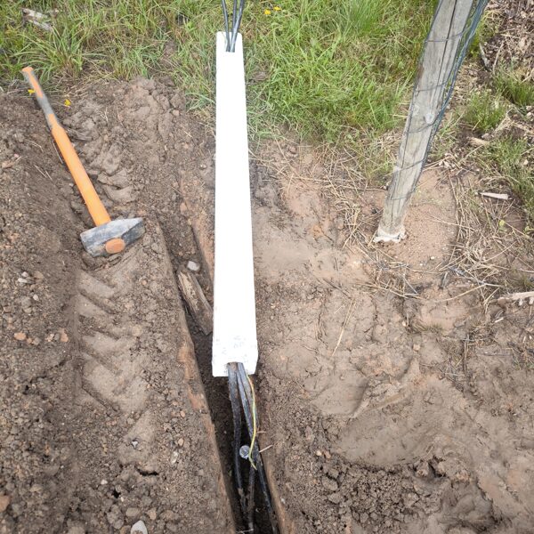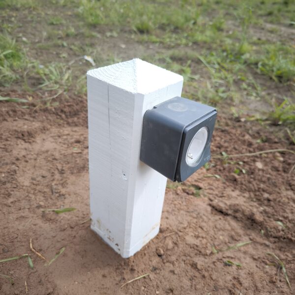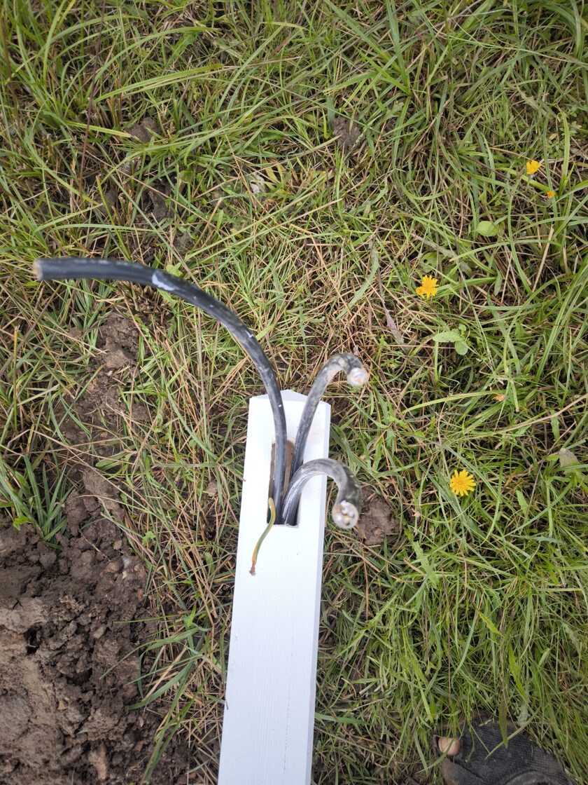Āra elektrības izvadu risinājums ar koka stabiņiem Lai nodrošinātu vairākus elektrības izvadu punktus teritorijā, tika izveidots risinājums, izmantojot koka stabiņus. Katram stabiņam: